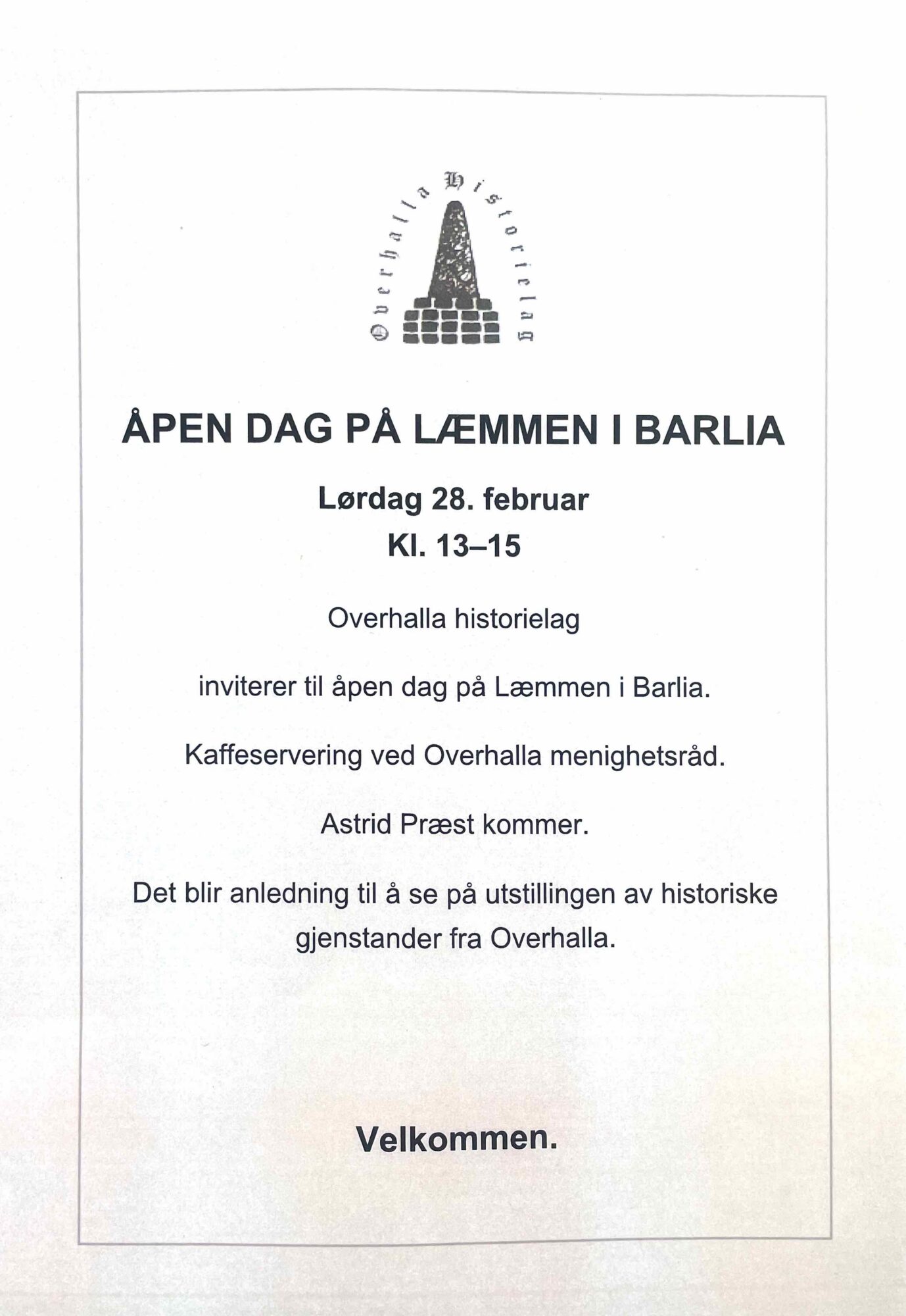 Arrangør: Overhalla Historielag/Namdal Historielag/Overhalla kommune