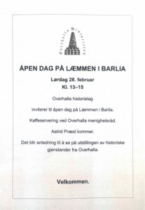 Annenhver tirdag fra 20.01.26 jobber styret/utstillingskomiteen med historielagets samling av gamle gjenstander som er samlet på Læmmen i Barlia, – Husmorskolen/videregående skole.